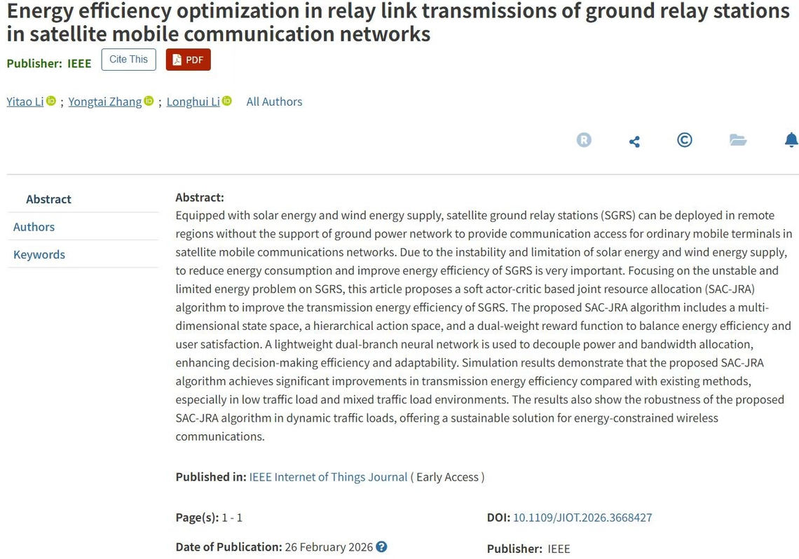 自信学院李伊陶副教授团队研究成果发表于通信领域顶级期刊IEEE Internet of Things Journal