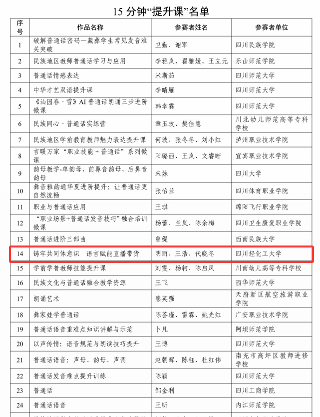 我校课程入选四川省首批普通话优质课程教学资源库