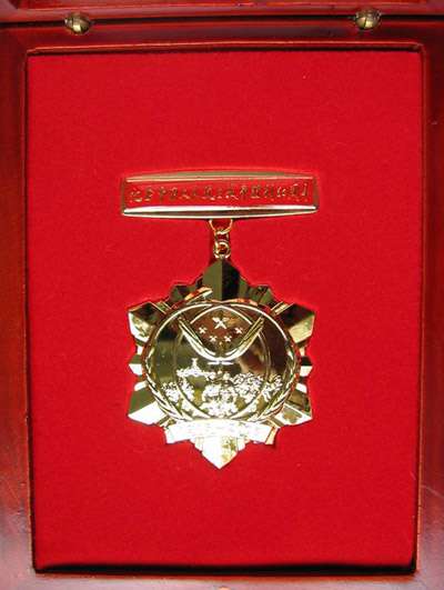 中共中央、国务院、中央军委今年向抗战老战士和抗日将领颁发的“中国人民抗日战争胜利60周年纪念章”由胡锦涛题写章名,纪念章正面铸有象征中国共产党领导的各族人民大团结的5颗五角星,象征和平的鸽子和橄榄枝,象征革命圣地的延安宝塔山,以及军民合力抗战的战斗场面。
