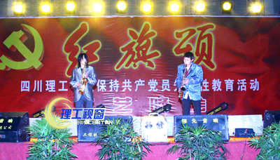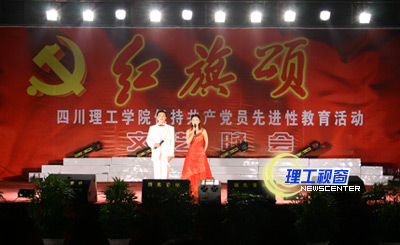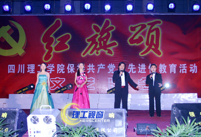 11月30日,我院保持共产党员先进性教育活动“红旗颂”专题文艺演出在汇东校区隆重举行。自贡市先进性教育活动巡视组的领导应邀出席晚会,院党委常委游建军、曾黄麟、唐健禾、李开世、邓起方、钱维新、龚敏、谢峰、杨荣建与院先进性教育活动督导员、监督员和全体共产党员以及民主党派、无党派处级干部一起观看了演出。 以下为晚会剧照。