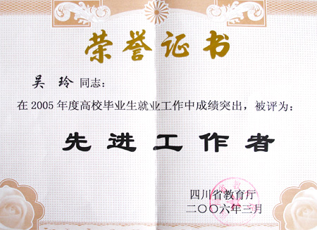 在3月15日--3月16日召开的2006年四川省高校毕业生就业工作暨表彰会议上,我院荣获“四川省普通高等教育毕业生就业工作先进集体”荣誉称号,学生工作部(处)就业指导中心主任吴玲、机电工程系党总支书记李增秀荣获“四川省普通高等教育毕业生就业工作先进工作者”荣誉称号。