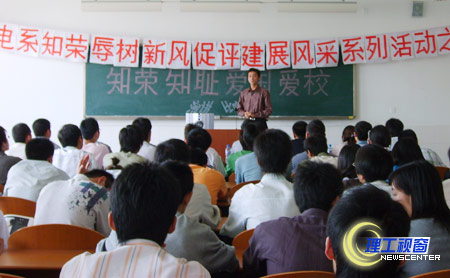 机电系党总支副书记王令权对此次演讲作了高度评价,他说,演讲赛促进了青年大学生自身对“八荣八耻”的思考和理解,从而树立和践行正确的荣辱观,掀起学习高潮,为我院的评建工作作出应有的贡献。
