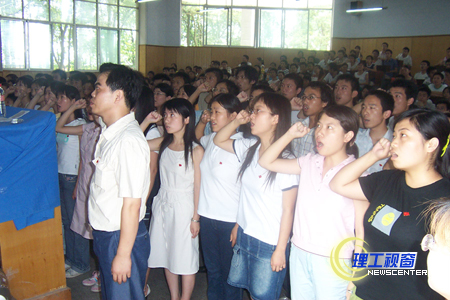6月29日下午,阳光明媚,邓关校区管委会党总支纪念建党85周年暨新党员宣誓大会在邓关校区三教三阶举行,57名新党员衣着整洁,佩带党徽,在党旗下庄严宣誓。赵芳代表新党员表示将努力学习,争做优秀党员。