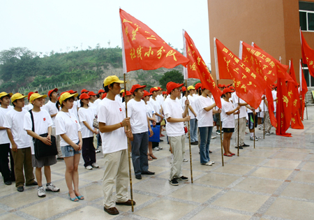 7月12日下午,我院在汇东校区隆重举行2006年暑期“三下乡”社会实践出征仪式。学院党政领导曾黄麟、李开世、钱维新、谢锋和党委常委组织部部长杨荣建、共青团自贡市委员会书记李明正、学生工作部部长钱晓等出席了出征仪式,仪式由院团委副书记王建琼主持。