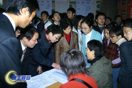 招聘现场的竞争异常激烈,每个求职者都力求在最短的时间内向用人单位充分展现自己的才能。各用人单位的招聘现场被围得水泄不通。记者在现场看到:在自贡东方外国语学校招聘小学语文、英语、美术教师5名,排队的同学居然多达四五十名。招聘单位对毕业生英语、计算机均有一定的要求。台资中山隆成日用制品有限公司对国贸专业毕业生的英语就要求达到6级。为了更好地方便同学们,学院还在喷泉广场设立了2个大幅液晶显示屏,滚动播放各单位的需求信息;自贡市人才交流中心和成都市人才交流中心分别在现场设立了咨询点,为广大毕业生就业服务提供相关政策文件和信息资源。党委书记游建军、副书记李开世亲自到现场视察工作。
