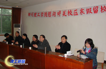 1月15日上午,党委副书记李开世、副院长钱维新同志率领学生处、保卫处领导一行到邓关校区召开座谈会,了解寒假留校学生情况。邓关校区管委会党总支书记、基础教学部主任肖兴政主持会议,管委会其他领导、全体辅导员老师以及学生工作办公室的同志与50多名留校学生一起参加座谈会。