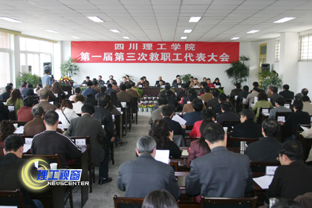 3月21日,我院第一届第三次教职工代表大会在汇东校区隆重召开。会议主要听取了院长工作报告、财务工作报告等5个情况报告,对人事制度改革、教职工住房修建的情况进行了通报和征求意见,并对学院校务公开情况进行了满意度测评。党委书记游建军、院长曾黄麟、党委副书记唐健禾、李开世、副院长邓起方、钱维新、龚敏和主席团其他成员在主席台就座。124名正式代表和26名列席代表参加了会议。会议由大会执行主席唐健禾主持。