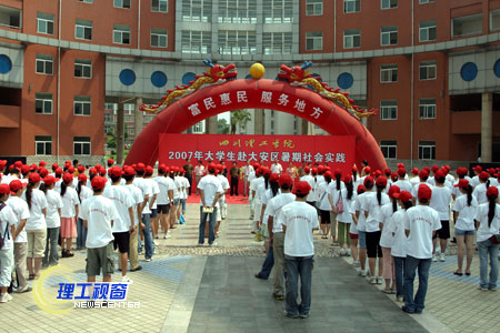 我院2007年暑期“三下乡”社会实践活动的主体是“富民惠民,服务地方”,活动共分为大学生“服务社会主义新农村”服务团、“关注民生,体察民情”考察服务团、“深入农村看巨变、服务农民献真情”服务团等11个团队。他们分赴大安区7个镇11个村进行社会实践活动。