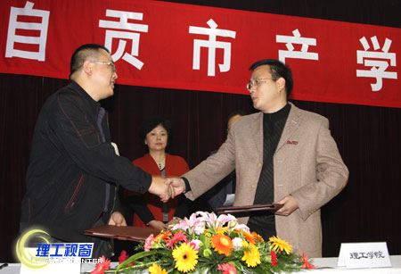 会上,学院还分别与四川旭水酒业集团公司签订了“商品酒联合开发协议”,与自贡市科瑞德新材料有限公司签订了“校企产学研合作框架协议”。