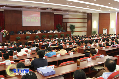 经过全院师生4年的艰苦努力,我院于去年12月2日至7日接受了教育部本科教学水平评估专家的实地考查,获得了优秀的好成绩。院长曾黄麟在会上向付出辛劳的师生员工表示衷心的感谢,对获得表彰的先进集体和个人表示热烈祝贺。曾黄麟在会上全面总结了评建以来学院取得的主要成就,也指出了学院存在的问题,并要求师生员工要在新的起点上,以团结为生命、以创新为灵魂,振奋精神,努力推进学院新跨越,创造学院明天新的辉煌。