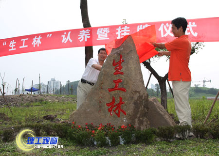 6月12日上午,汇东校区新实验楼旁人声鼎沸,格外热闹。一块巨大的石碑上“生工林”三个大字在明媚的阳光下显得格外醒目。生物工程系“生工林”认养暨挂牌仪式在这里隆重举行。