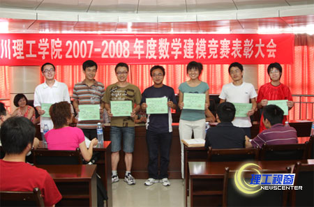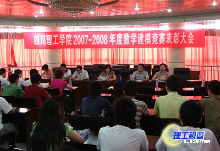 6月13日下午,学院在汇东校区行政中心5楼会议室举行了2008年数学建模竞赛颁奖典礼。副院长龚敏、教务处处长姚毅、团委副书记王建琼、学生处副处长侯懿、数学系主任李作安、以及全体数学建模指导老师、数学建模全国竞赛和校内竞赛的参赛队员等出席了颁奖典礼。