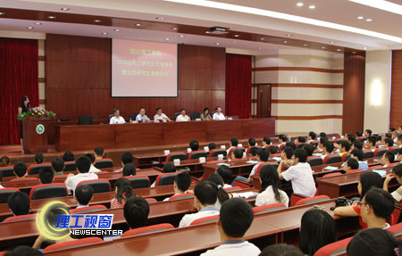 院长曾黄麟代表学校党政对研究生新生表示热烈的欢迎。他简要介绍了学校的基本情况之后,对同学们提出了希望和要求,希望大家胸怀祖国,树立远大理想,做知行统一、全面发展的社会主义事业建设者和接班人;明确自身的专业目标,选定专业方向,要在本专业领域有所提高和突破,同时要有广博的知识,端正学习态度,认真做好学问。希望同学们善于思考,勇于创新,充分利用学校提供的丰富资源,在各自目标领域认真探求,不断推进学术研究。同时不断加强自身修养,注重全面发展,争取知识水平和品格能力有新的升华。他最后祝愿同学们身体健康、生活愉快、学业有成。