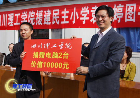 此次,我校为援建民主中心小学袁文婷图书室,共捐赠了价值近10万元的物品,其中包括三千多册图书、两台电脑,并代表全校师生向袁文婷的父母送去了二万五千余元的捐款。[page]