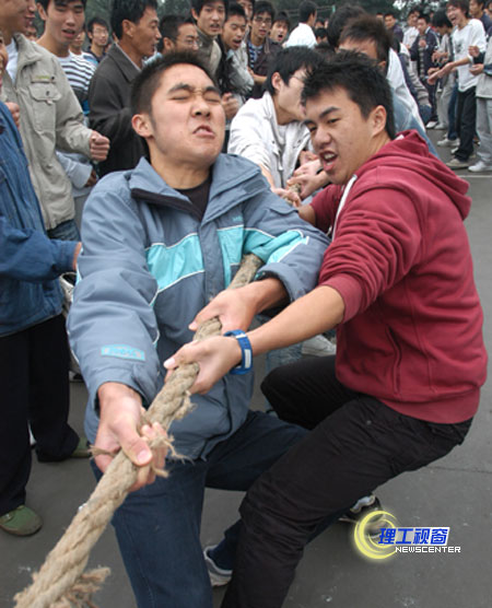11月15日上午9时,黄岭校区学生宿舍管理委员会在灯光球场举行了第四届拔河比赛。黄岭校区管委会基础教学部领导李坚、明星敏、杨家权、陈明尧出席比赛并为同学们加油助威。