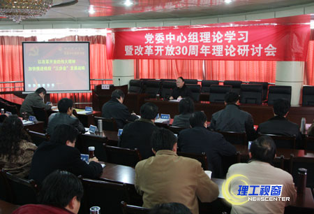 1月4日下午,我校举行了党委中心组学习暨纪念改革开放30周年理论研讨会,学校党委中心组成员、党委委员、纪委委员、各党群部门负责人、各直属党支部书记参加了会议。会议由党委副书记唐健禾主持。