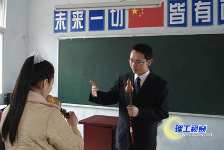 11日下午,化学与制药工程学院天爱艺术团志愿者周全、敬铭同学到市盲聋哑学校以常规教学的形式担任英语和器乐老师,分别教授盲聋哑学生英语和葫芦丝,他们精心的课堂设计和耐心的引导受到了盲聋哑学生的热烈欢迎,共同度过了愉快的学习时间。据悉,除了在“青春奉献月”开展健康知识宣传等志愿活动外,天爱艺术团在本期的志愿者活动中将以参与盲聋哑学校教学和第二课堂的形式为主,重点在英语和器乐方面开展教学活动,在以后的活动中逐步增加更多的元素和展示实践成果。