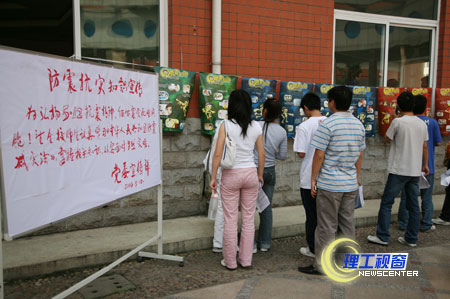 宣传活动以图片展和散发宣传资料的形式进行。上午9点50,党委宣传部的全体工作人员在大学生记者团的协助下,在汇东校区喷泉广场挂出了宣传展板和图片,并向过往师生散发宣传资料。图片展以图文并茂的方式形象生动地向师生们介绍了防震知识,宣传资料则向大家介绍了《中华人民共和国防震减灾法》、《市民地震知识》、《防震避震紧急措施》等知识。