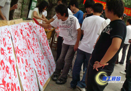 5月12日,是汶川特大地震发生一周年的日子,艺术学院在营盘校区举办了以 “汶震四方,亿手连心”为主题的海报展。参展作品以不同的视角和表现形式展现了全国人民众志成城,抗震救灾,重建家园的壮举和精神。