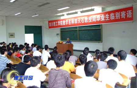 6月23日下午,我校教学名师郭天石教授在厚德楼226教室向机械工程学院2009届毕业生作了一场生动、细致的报告,报告由机械工程学院党总支书记李增秀主持。