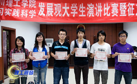 征文比赛颁奖仪式上,学生工作处领导和政法学院领导、老师对获奖同学进行了颁奖,并鼓励同学们要继续深入学习实践科学发展观。