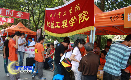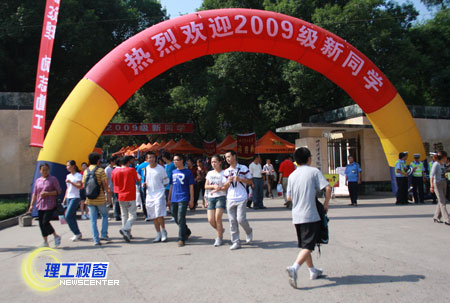 金秋橙黄,丹桂飘香。8月31日——9月1日,我校迎来了2009级新生。截止今日下午4时,已有来自全国各地的近6000名新生陆续来到我校。平日宁静祥和的校园,沉浸在了一片温馨欢乐的海洋里,处处横幅高挂、彩旗招展,显得格外热烈、喜庆。