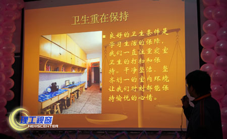 此次比赛分为寝室设计、卫生评比和多媒体演示两轮,从三十多个参赛寝室中评选出12个设计新颖、卫生优良的寝室参加决赛,再以多媒体演示和解说相结合的形式进行决赛大比拼,以最后综合得分评出优胜者。