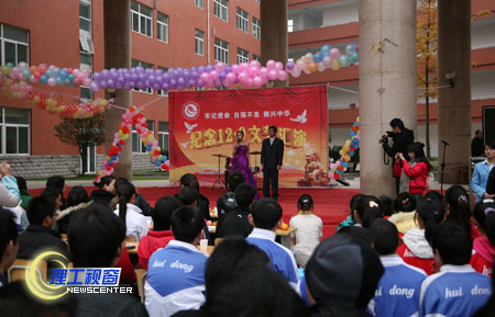 12月9日下午,化药学院与自电学院在汇东校区喷泉广场以文艺汇演的形式展开了纪念“12•9”团组织活动。汇演由汇东实验学校小学生们慷慨激昂的《七子之歌》拉开了序幕,其稚嫩天真的声音包含了对祖国母亲的挚爱。接着小品《考试“疯”云》掀起了活动一阵高潮,整个活动现场都沉浸在欢声笑语中。歌曲串烧中《中国人》、《少年》、《精忠报国》一首首脍炙人口的 “红歌”以优美的旋律和琅琅上口的歌词,激荡着歌咏者的爱国热情,引起了现场观众的共鸣。活动中,极富特色的是汇东实验学校初中生入团宣誓仪式,新团员们在庄严的团旗下宣誓后,再由我校老团员们为他们佩戴上光荣的团徽,立志为党的事业奋斗终生。本次活动不仅引导了广大青年学生继承革命传统,弘扬民族精神,牢记历史使命,更加激发了我校学生努力拼搏,奋发向上,报效祖国的热情。
