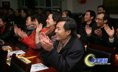 联欢会现场欢声笑语不断,掌声此起彼伏,总支成员全都沉浸在喜迎新年的欢乐祥和氛围中,2009年的他们兢兢业业工作,圆满顺利的完成了本职工作,2010年的他们将再接再厉,争取更好的成绩,为学校的发展贡献自己的力量。