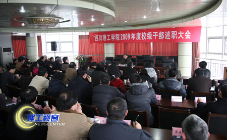 12月30日,学校在行政中心5楼会议室举行校级干部2009年度述职测评大会,7名校领导分别在会上进行述职。全校正处级干部(包括主持工作的副职)、党委委员、专家学者、民主党派代表、人大代表、政协委员、教代会主席团成员、离退休代表应邀参加了校级干部年度述职测评大会。
