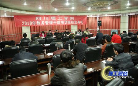 12月17日下午,我校教务管理干部培训班结业典礼在汇东校区行政中心3楼会议室举行,党委书记游建军,院长曾黄麟,副院长龚敏、王成端,组织部部长罗成芳,宣传部部长支果,教务处处长傅成华出席典礼,教务管理培训班全体学员参加了结业典礼。