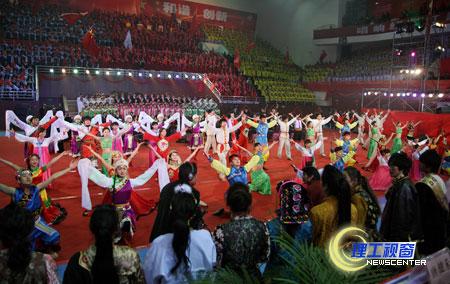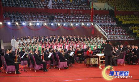 此次“红歌会”于2010年12月31日在自贡市体育馆举行,共动员了自贡市四区两县教育系统的力量参赛,经过一个多月的精心准备,共有11个方队3000余人参加比赛。我校艺术学院合唱团和舞蹈队的同学们,在指导老师的辛勤指导下,牺牲了大量的休息时间,特别是在面临我院新年音乐会繁重的排练任务和期末考试的压力下,克服了种种困难,刻苦训练,分别在比赛的开始和结尾做了精彩的表演。“红歌会”总导演在总结会上特别提到了艺术学院代表队过硬的专业素养,为整个“红歌会”开了个好头,也让结尾更加精彩。