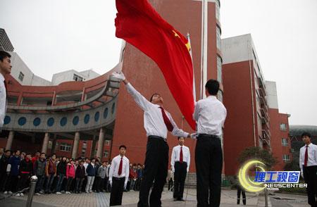 升旗仪式庄严有序,我校大学生国旗护卫队队员精神抖擞,手托鲜艳的五星红旗,迈着铿锵有力的步伐走向升旗台。随着雄壮的《义勇军进行曲》响起,鲜艳的五星红旗迎着初升的晨曦冉冉升起。