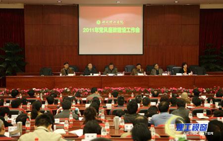 党委书记游建军向与会人员作了《以党风廉政建设的新成效迎接建党90周年》的主题发言。他说,今年是学校争取更名的关键一年,我们要站在维护学校改革、发展、稳定大局的高度,坚持学校建设和反腐倡廉“两手都要抓、两手都要硬”,以全体党员干部奋发有为的新风貌和党风廉政建设的新成效,迎接建党90周年。他指出,我们要坚持教育、制度、监督并重,健全学校惩治与预防腐败体系建设责任体系。“防治腐败,教育是基础”,反腐倡廉建设从源头抓起,离不开科学、规范、有效的教育制度;“反腐倡廉,监督是关键”,要切实解决监督中失之于宽、失之于软的问题,要使党内、党外监督,校内、校外监督形成合力;制度是反腐倡廉的治本之策,制度的完善和制度的执行上要惩防并举、注重预防。我们要以党风廉政建设责任制为抓手,强化制度执行力,维护制度的严肃性和权威性。他希望全体党员和各级干部正确认识当前党风廉政建设和反腐败斗争的总体态势,不断增强反腐倡廉建设的责任感和紧迫感,努力做到:第一,严明纪律,加强监督,确保政令畅通;第二,认清形势,未雨绸缪,坚持“预防为主”。第三,明确意义,加强教育,做到廉洁自律;第四,改进作风,密切联系群众,保持共产党员本色。