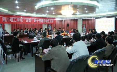 汇报会上,考核组组长吕重九同志对此次考核检查工作的形式、目的、意义做了简要说明,同时对参观校史陈列室时看到的反映我校“勤奋求实、艰苦创业、无私奉献、校兴我荣”的黄岭精神给予了高度评价。党委书记游建军代表学校对考核组一行表示了欢迎,并以《加强领导班子建设,推进四川理工发展》为题,从高度重视,周密部署,扎实推进“四好”活动;坚持“四好”,注重实效,着力提高领导班子科学管理水平;创先争优、固基强本,切实加强学校党建工作;解放思想,抢抓机遇,跨越发展显实绩等四个方面对我校“四好”班子创建活动进行了全面汇报。
