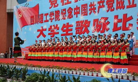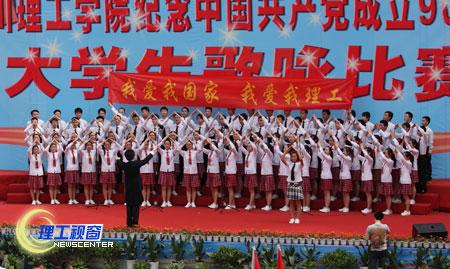 全校15个二级学院(部)及研究生代表队参加比赛,共同唱响红歌,颂扬中国共产党的丰功伟绩。以《国家》、《红旗颂》、《山丹丹花开红艳艳》、《四渡赤水出奇兵》、《祖国不会忘记》等为代表的红歌带领着现场观众重温党的奋斗历程与辉煌岁月。他们用嘹亮的歌声,和谐的声部组合和满腔的热情表达了对党的热爱和祝福。