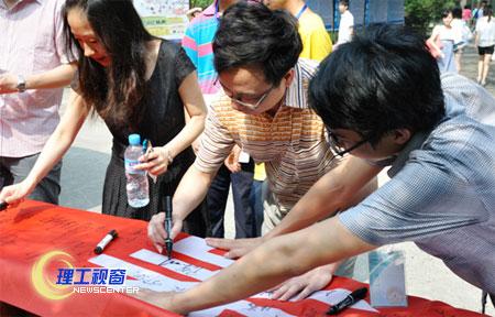 2011年 6月15日,在学校教务处的统一安排布置下, 黄岭校区基础教学部学工办和教学办在图书馆外举行了“诚信应考 反对作弊”为主题的签名活动。