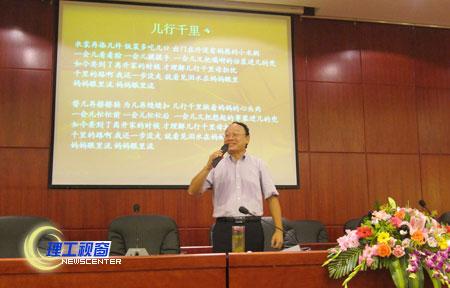 唐健禾教授从“人要有信念、人要有信心、人要有品位、人要有精神”四个方面展开讲述,他用自己30多年教师旅程的感言道出了教师职业的特质,即“教人学会读书、育人获取成功”。他告诉大家人要有信念,要一辈子用于挑战自己,要崇尚高雅情趣,要拥有“精神”;信念是动力源泉、信心是动力保障、品位提升动力质量、精神强化动力韧度。他以治学严谨的风度、幽默风趣的语言、生动鲜明的事例、经典的名言警句赢得了在场所有毕业生的阵阵热烈掌声。最后,唐健禾教授以优美的歌声《儿行千里》将讲座推向了高潮。