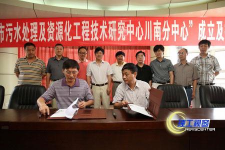 会上,“中心”主任李洪与“分中心”主任王成端签订了设立“川南分中心”的协议。王成端对“分中心”的机构组成、研究方向、发展规划进行了详细介绍。他表示,“分中心”建成后将致力研究污水处理新技术研发应用、城市污水资源整合、环保市政工程咨询、污水处理设备研发和污水处理资源化技术国际交流等方面的工作,力争为城市污水处理作出应有贡献。