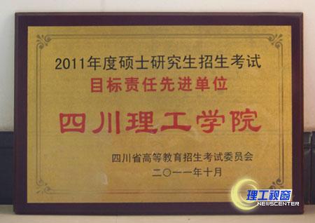 我校在2011年的研究生招生考试工作中严格按照《四川省2011年硕士研究生招生考试目标责任书》的要求,高度重视考风考纪和试卷(答卷)的安全保密工作,认真落实目标责任,措施得力,管理到位,顺利完成了2011年度全国硕士研究生招生考试工作任务,荣获“四川省2011年度硕士研究生招生考试目标责任先进单位”。