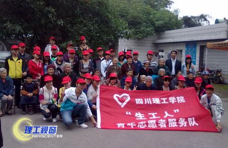 10月21日上午,“生工人”青年志愿者服务队社区部的35名志愿者带着对老人的关心、关爱走进了富台山夕阳红敬老院。