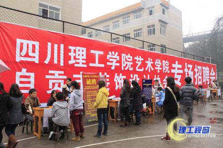 12月7日上午,艺术学院与自贡市装饰设计协会在营盘校区博逸楼前篮球场联合举办美术专业“2012届毕业生专场招聘会”,吸引了省内外近30家装饰设计、传媒、营销策划等行业单位莅临会场,招纳英才。学生处处长钱晓、艺术学院党政领导班子成员、各科室负责人、辅导员老师以及2012届毕业生参加了本次专场招聘会。