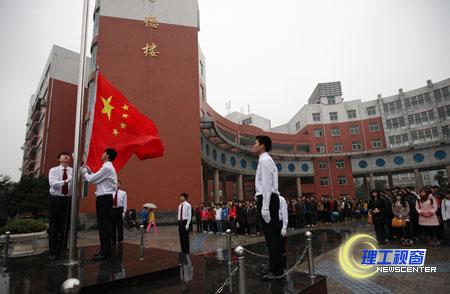 建筑工程学院、材料与化学工程学院、自动化与电子信息学院、外语学院、人文学院和理学院学生代表共1000余人参加了新学期升国旗仪式。