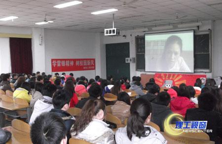 大会在大家一起分享雷锋的感人故事中开始。在播放“轮椅天使”王文珞的视频时,大家被这名自强、感恩的自贡女孩深深感动。她的事迹也使同学们陷入了深深的思考。随后在主持人与她的电话连线中,更是让大家亲身感受到了那份坚强的生活信念。接着,2010级工管四班三位同学与大家分享了他们的支教心得,让大家看到了生活中乐于助人的“活雷锋”。