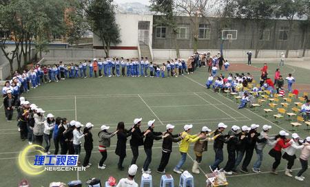 操场上,这边踩气球的学生们互相追逐,特别制作的保龄球游戏让同学们也玩的不亦乐乎。那边跳绳比赛中,跳跃的速度更是在聋哑学生频繁的脚步中被体现得淋漓尽致,专为盲孩准备的敲锣活动也让他们从看不见的世界感受到快乐的所在,压轴游戏的集体兔子舞更是掀起另一个欢乐的高潮。他们那一张张天真可爱的笑脸,感染了我们所有的人,原来他们也是如此快乐美丽。