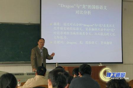 唐健禾以我校学报“翻译、文化与文学”专栏的16篇投稿文章为素材,把这些论文按选题分为翻译理论与实践、文化对比、文学和其他四个板块。他通过展示多媒体课件,带领广大教师欣赏与学习了这16篇论文的选题与内容概要,分析每篇文章的特色,亮点与不足,开阔了老师们的眼界与科研思路。随后,唐健禾以他广博的知识和严谨的治学态度与老师们分享了他个人关于科研的几点思考与认识:一、研究选题的灵活性与创新性;二、论文撰写的拓宽性与深入性;三、语言论述与举例论证;四、可能存在的一些问题。唐健禾从这四个方面深入浅出地为老师们的研究方向及论文选题做了悉心的指导,解决了长久以来困扰老师们在科研选题、撰写、举例论证等方面的难题。最后,唐健禾以穆雷的“正是因为翻译理论的深入,翻译实践中的许多问题才得以被描述、被发现、被解决;也正是通过翻译理论的发展,翻译学才获得现行教育体制的认可,翻译行业才逐渐被大众所认识,所接受”作为结束语结束了这次精彩生动的讲座。