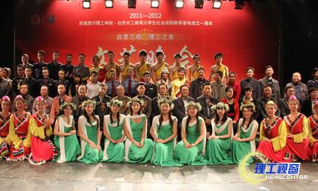 晚会结束,各位领导上台与演员们合照。本次晚会精彩纷呈,气势宏大,愿四川理工学院与自贡市工商局友谊越来越深,大学生实践基地越办越好。