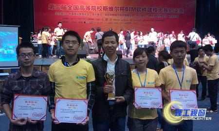 5月12-13日,第三届全国高等院校学生斯维尔杯BIM系列软件建筑信息模型大赛分别在西安建筑科技大学和深圳大学两地同时举行。我校建筑工程学院09级学生李俊东、唐南江、黄润竹、李炜组成的地平线团队在预选赛中以西南赛区第一名的成绩进入决赛并在土木工程教研室主任刘文方老师带领下前往西安建筑科技大学参加决赛。在决赛中我校学生表现优异,获得安装算量与清单计价的专项全国二等奖及团体全国三等奖的好成绩。