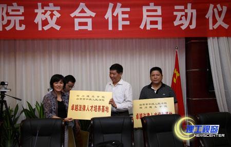 6月19日下午,我校与自贡市中级人民法院主题为“卓越法律人才培养基地”的共建合作启动仪式在自贡中院综合会议室隆重举行。这是认真贯彻教育部、中央政法委《关于实施卓越法律人才教育培养计划的若干意见》(教高〔2011〕10号)精神的切实举措。自贡市委常委、政法委书记杨家禄;我校党委书记游建军、院长曾黄麟、副院长龚敏、副院长蔡乐才;自贡市中级人民法院院长马泽波、副院长黄晓春、副院长王剑波、中院机关党委书记黄刚等出席仪式。仪式由中院副院长黄晓春主持。
