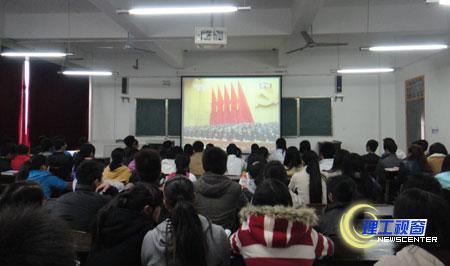 在收看过程中,师生们聚精会神,认真记录,现场气氛热烈,井然有序。对胡锦涛总书记的报告予以热烈掌声。
